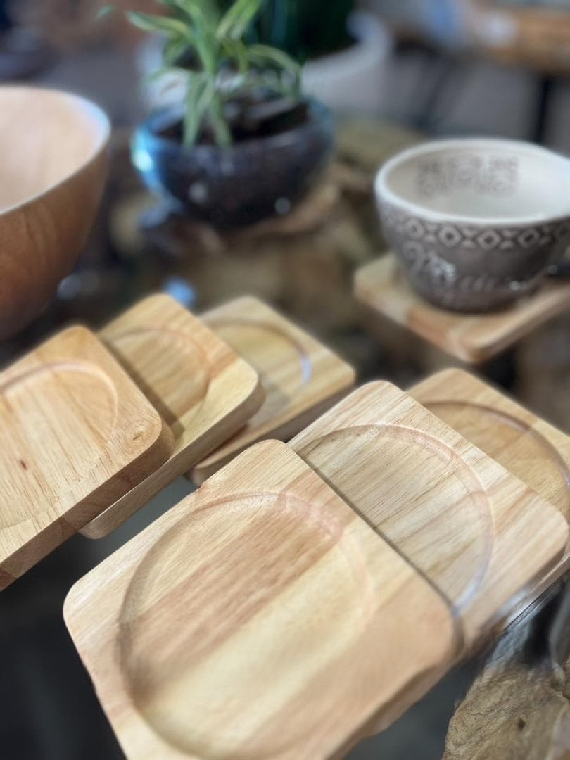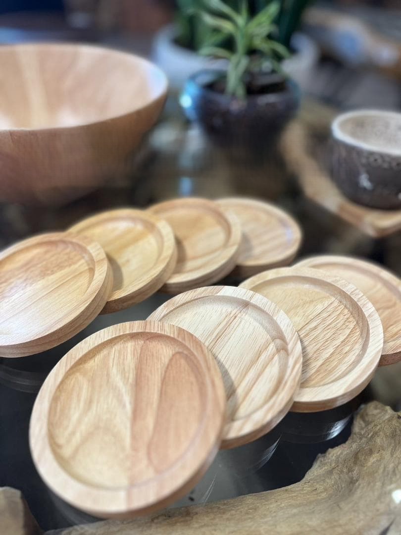 やさしい木目と温もりを感じる、ゴムの木(ラバーウッド)を使用した木製コースター。シンプルで飽きのこないデザインは、和洋問わずさまざまなテーブルコーディネートに馴染みます。