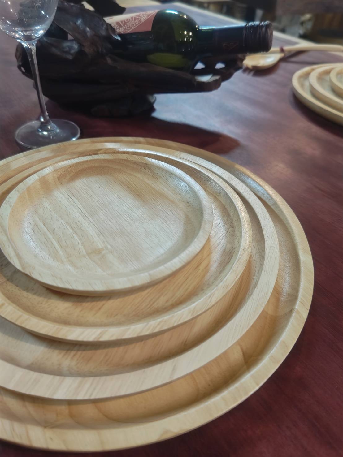 ・ラバーウッドは比較的やわらかい木材のため、硬いブラシや研磨剤の使用は避けてください。・表面の乾燥が気になる場合は、植物性オイル(えごま油・オリーブオイル等)を薄く塗布し、布でなじませてください。