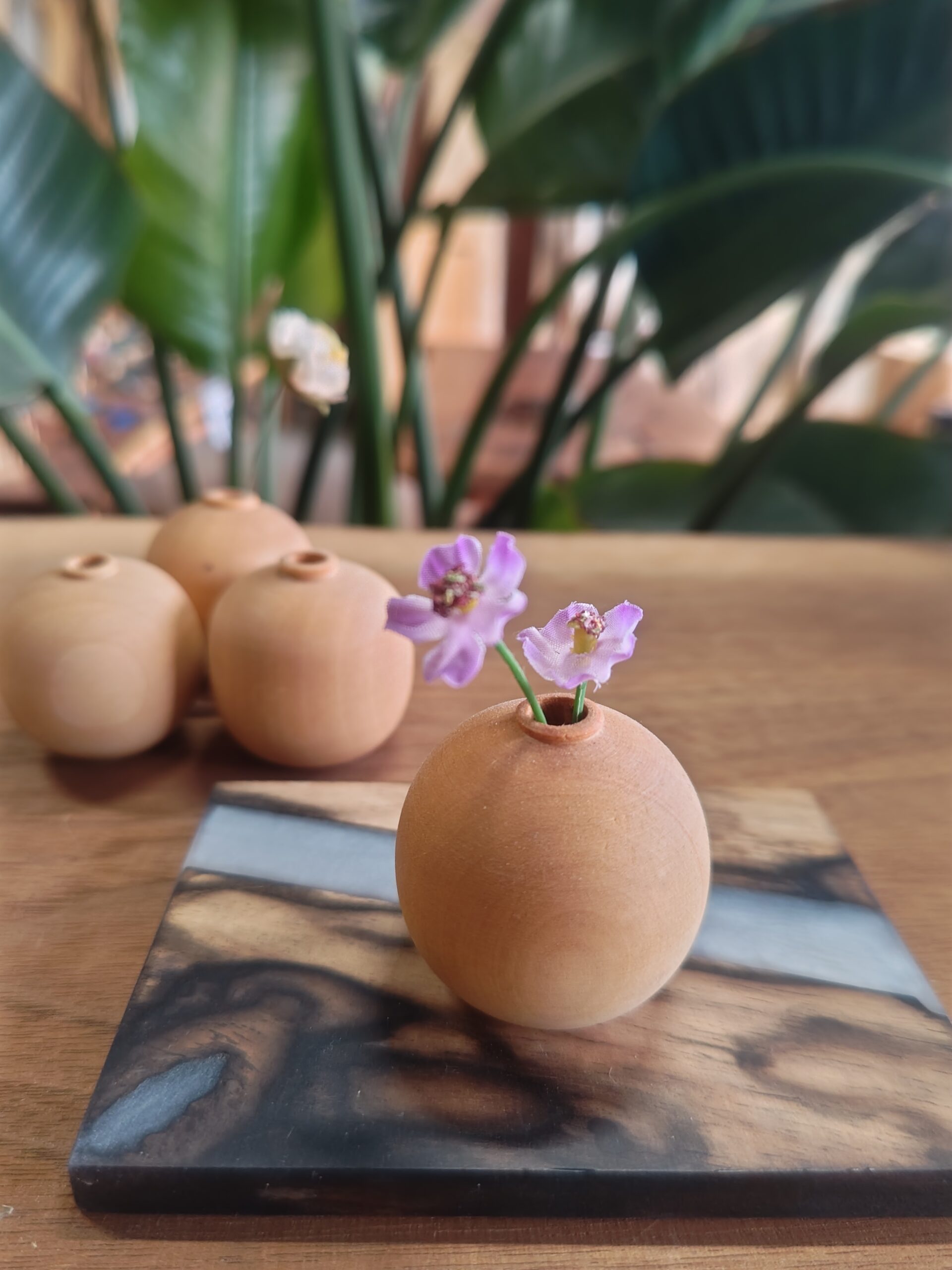 選び抜かれた銘木を使用し、丸みのある美しいフォルムに仕上げた一輪挿しです。